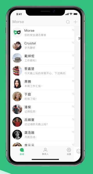 Morse是一款免费的即时通讯应用,具备手机端最高等级的端对端加密通讯功能,支持文字、语音、视频等聊天方式,让用户在轻松氛围中结交朋友,甚至找到真爱。有需要的用户快来下载吧!