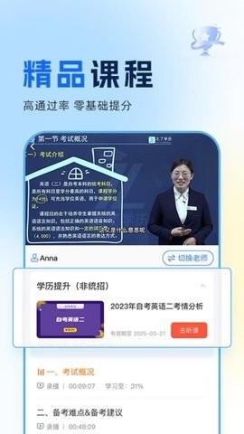 多位名师课程在线讲解,提高自考通过率,实现零基础提分。
