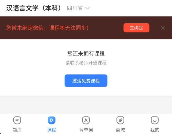用户需要绑定自己的微信才能同步课程,用户需要联系老师才能开通课程。