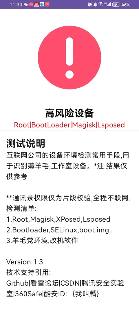 APT检测是一款专注于手机系统环境安全检测的专业工具。可快速扫描设备的Root状态、系统异常及安全漏洞,相关用户在这里可以对系统的底层组建进行深度快速扫描操作,快速定位隐藏的Root权限、magisk/XPosed框架及改机软件等风险项。