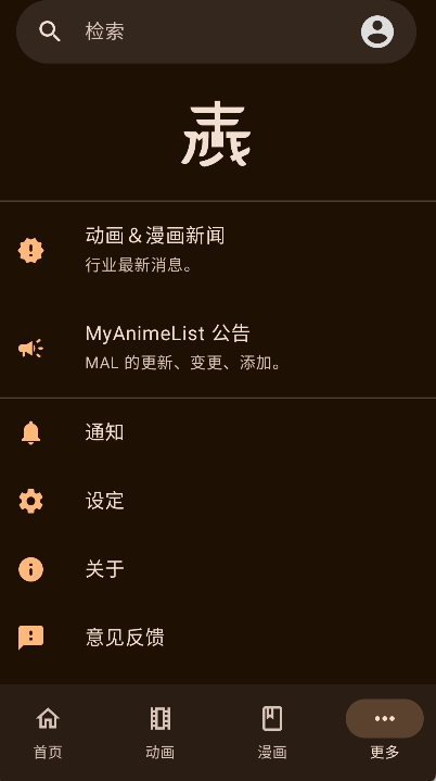 2、可自由切换浅色或深色主题,选择偏好语言,还能查看 MyAnimeList官方公告、浏览行业新闻,获取反馈渠道。