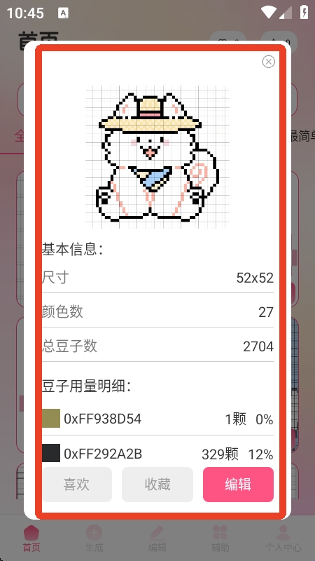 4、个性化设计:支持个性化设计,用户可以自由调整图案、颜色和尺寸,打造独一无二的拼豆作品。