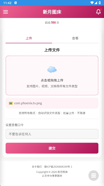 新月图床是一款便捷的工具 APP,支持在android设备间快速传输各类文件,有着丰富的功能,不需要绑定手机号便可以上传图片,生成永久的链接,还可以压缩图片等优势,有需要的用户快来下载吧!