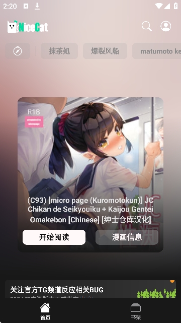 nicecat(色素漫画)是一款免费的漫画阅读神奇,这里有着各式各样的漫画作品,类型齐全,包括abo,热血,重生,总裁,悬疑以及虐恋等等,每个作品还有详细的介绍,可以使用搜索功能精准查找,还可以用来制作头像,将各种照片转为头像,也可以在涂鸦版块中进行创作,发挥你的想象力。