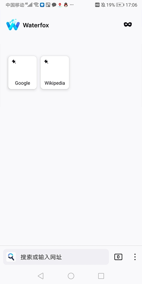 1、用户在本站安装成功后打开app不需要任何设置就可以以中文语言界面显示,用户通过底部输入框输入网址就可以进入所在网页