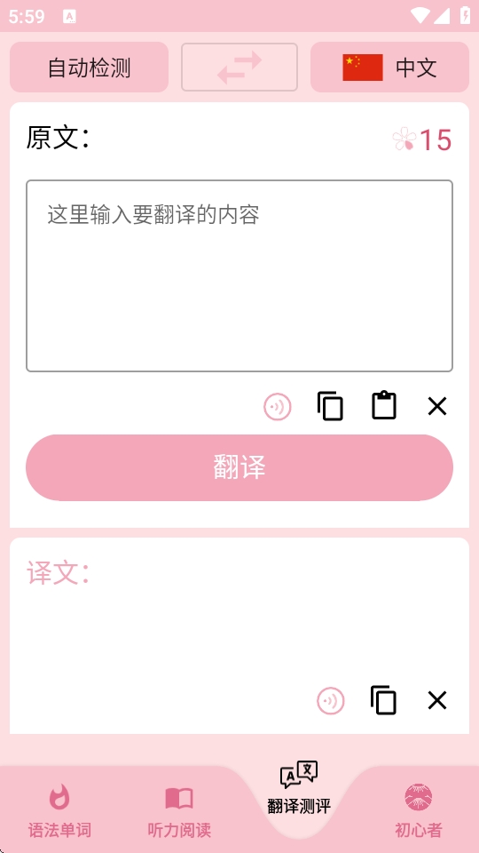 点击翻译测评还可以进行日语的日常翻译