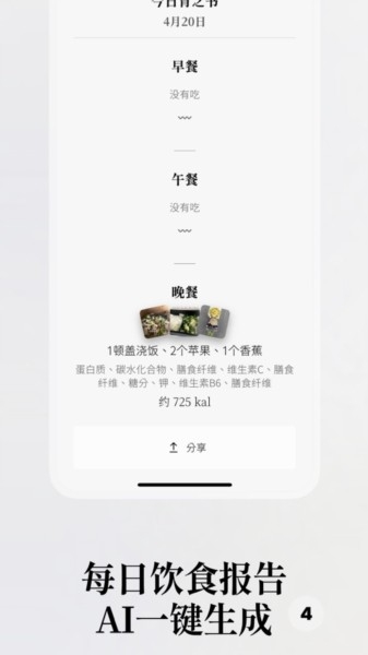 1、利用计算机视觉技术识别图片中的菜品,生成饮食记录卡片。