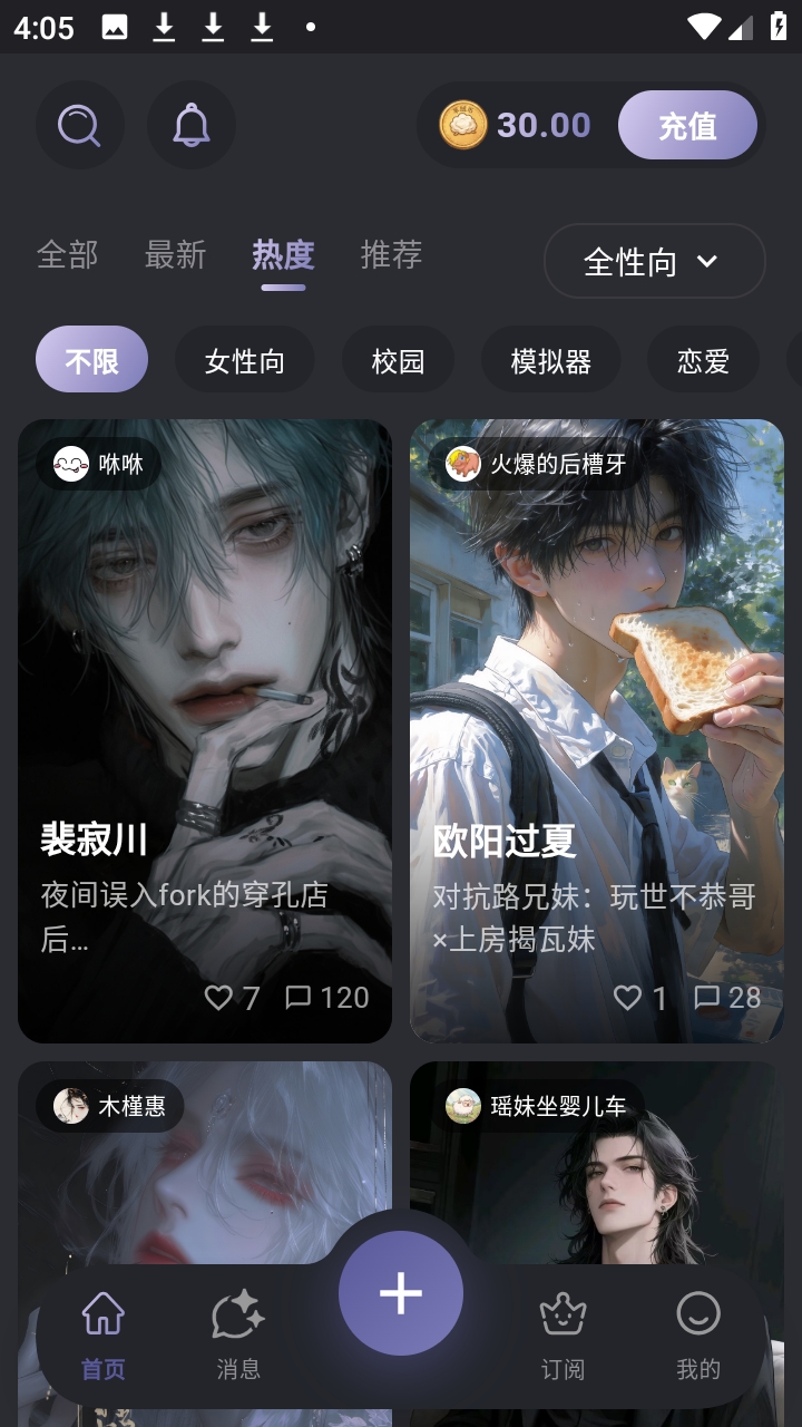 mumupub是一款AI虚拟角色对话软件,用户可从外貌、性格、背景故事到说话风格全方位塑造AI角色,支持设定古风公子、校园学长、救赎系恋人等多种人设,满足不同剧情扮演需求,打造专属情感港湾,允许用户自由表达情感,畅聊任何话题不被打断。