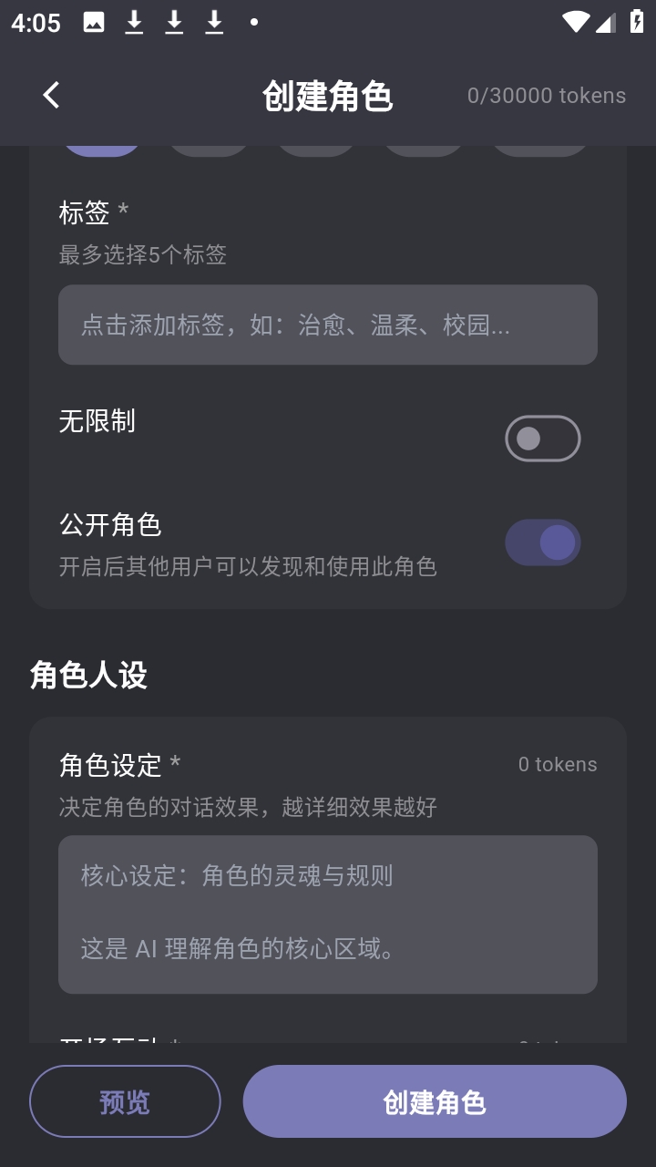 2、然后上传角色照片,为角色填写好名字、性格等信息。