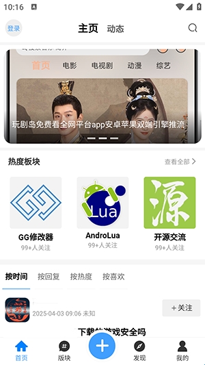 6、而首页中的【动态】里,有各种玩机分享贴和技术求帖,大家可以在这里无限制进行交流哦。