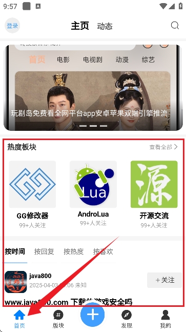 3、来到首页中,如图所示,这里有各种热门板块,还有诸多技术分享贴。