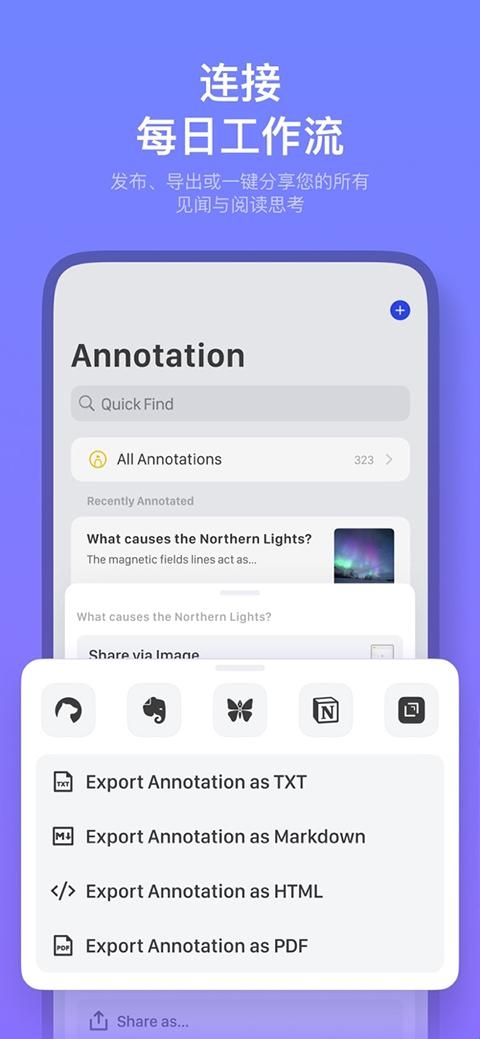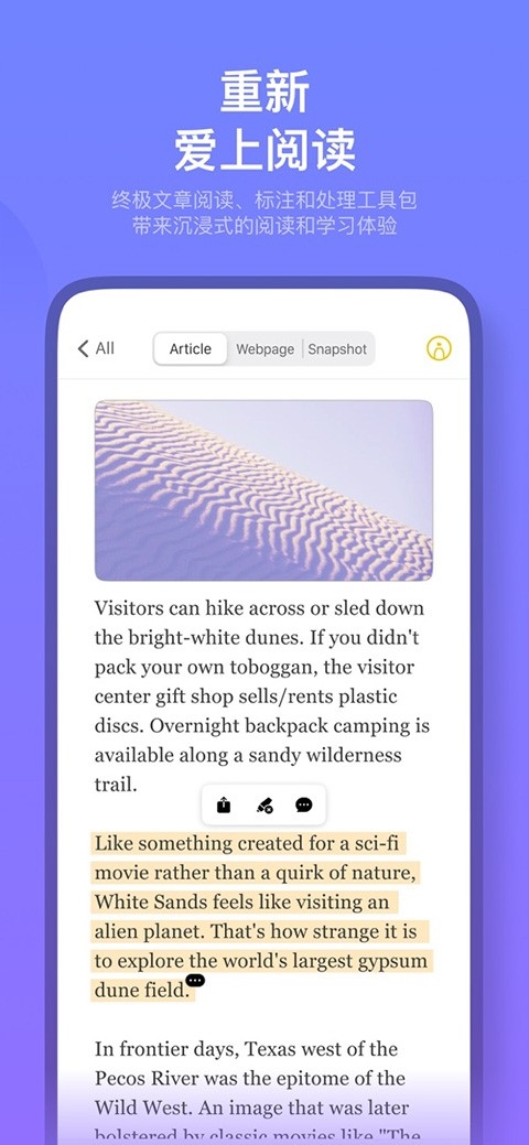 4、小组件在锁屏或主屏幕展示未读的文章和已标注内容,随时利用碎片时间,开启专注阅读或回顾重点。