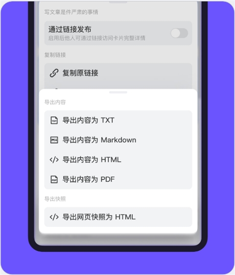 4、知识发布导出,一键轻松分享自己所有的经历和阅读思考,连接日常工作。