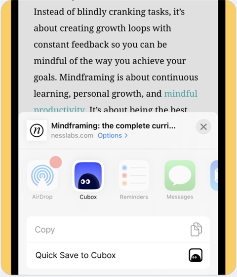 3、剪贴板自动识别在任何 App中复制链接或文字,回到 Cubox,底部会自动弹出提示按钮,点击收藏。