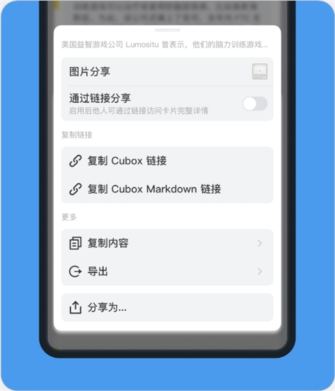 2、通过链接分享生成 Cubox链接分享已解析排版的文章,包含个人标注、见解,可随时停止/恢复分享。