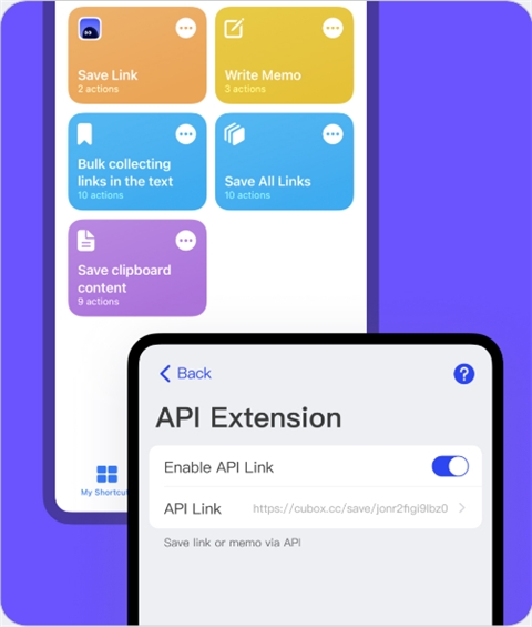 7、更多收藏方式通过快捷指令、API等多种方式,在不同平台都能方便收藏。