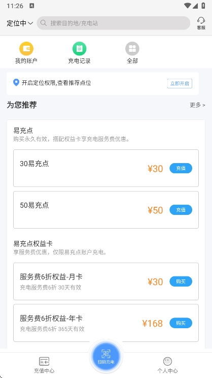 点中间这里的【扫码充电】按钮,扫描电桩二维码。