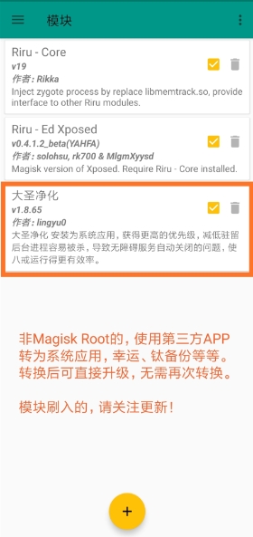 大圣净化是一款超级专业的可以对广告进行屏蔽的APP,能够帮助用户一键拦截各种软件中的广告、插件和弹窗,有效的智能拦截手机里的广告和骚扰电话,通过该模块净化手机中所有广告,还你一个纯净的手机体验。
