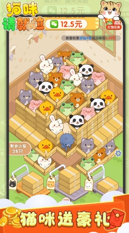 猫咪请就位是一款全新的手机消除游戏,进入到游戏里面以后看到可爱的小猫咪,整个的过程都是可以获得很多的奖励的!猫咪请就位红包版是一个有趣的三消游戏,游戏简单,只要把三只相同的猫消灭包装成一个盒子就可以通过,消灭越多红包越多,解锁你的红包福利,完成这个挑战。所以你们如果喜欢的话,现在就赶紧来下载游戏吧!