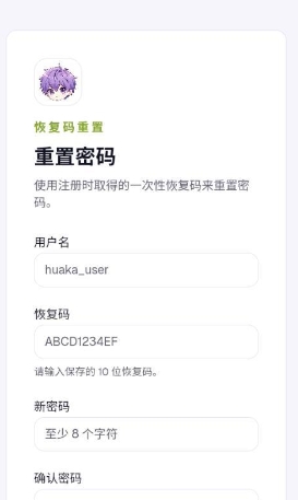 4、提交信息后,保存好系统生成的 10位恢复码(用于后续找回密码)。