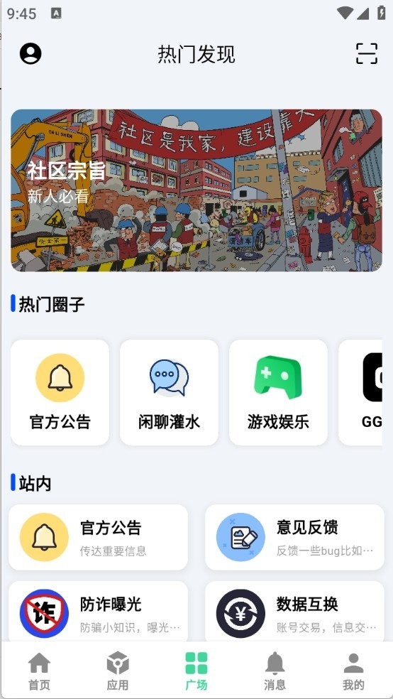6、“广场”栏目,有很多热门的圈子、技术交流以及各种资源分享。