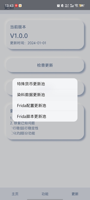 2、在我的界面点击配置更新。