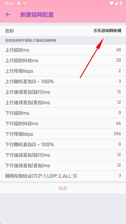 2、设置并填写合适的弱网名称,便于后续快速切换和查找对应配置。
