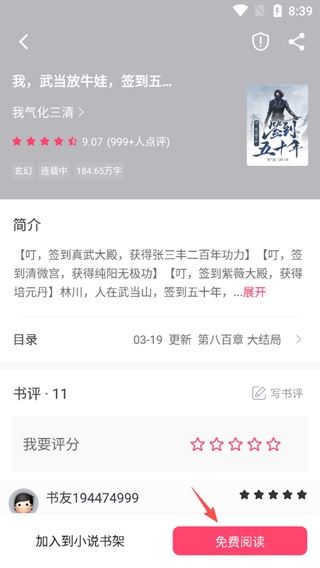 2、搜索你想看的小说、漫画点击免费阅读也可加入书架方便日后查看