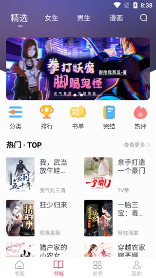 1、打开小小追书App,在书城板块可以看到有小说和漫画两种类型