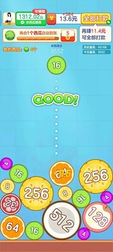 3、采用当前非常热门的竖屏操作,让用户可以打开手机,轻松的享受合成水果的快乐。