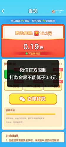 玩家点击游戏右上角红包提现即可进入红包提现页面,满0.3元即可提现。