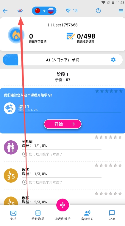 1、在用户界面点击上方的王冠标志。
