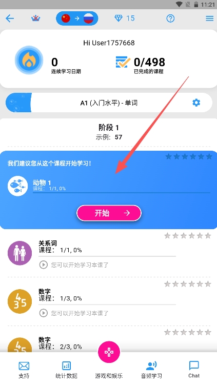 3、在此选择你要学习的语言。