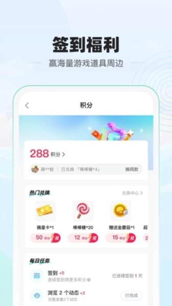 2、好处多多:支持你通过登录和参与活动获取积分,还能把积分兑换成各类游戏福利。