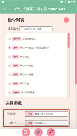 3、生成指令:根据游戏需求,选择合适的指令生成选项,轻松生成所需的指令。