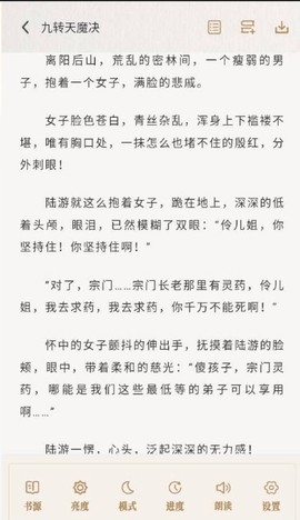 4、点击小说的标题即可进行阅读界面,用户可以对阅读界面的颜色、字体和亮度进行调试