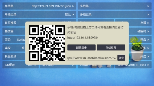 4、通过扫描二维码配置地址。在安装完成后,进入兔盒TV的设置,通过扫描配置页面上的二维码来配置播放地址。