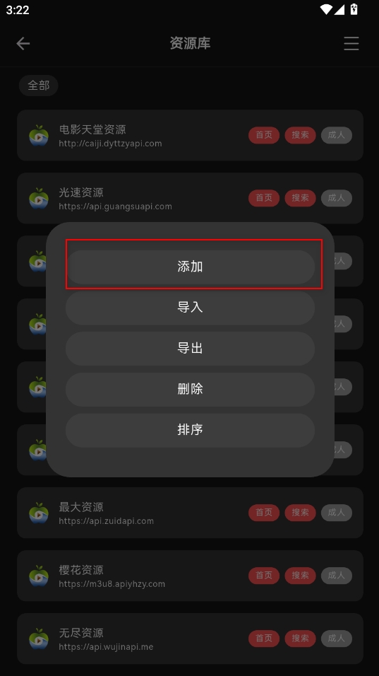 6、如果是单个资源库或者媒体服务器,我们就可以点击添加。
