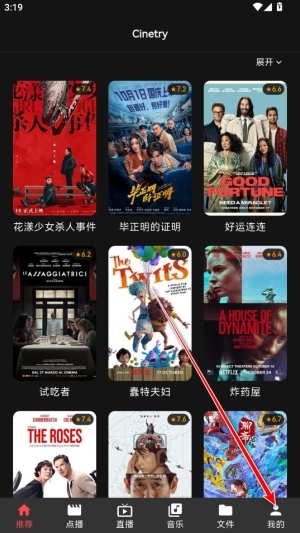 1、在本站下载安装Cinetry播放器并打开,首先我们需要点击我的。