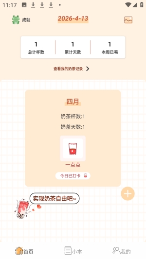 奶茶小本是一款轻量化记录类App,通过可视化日历界面,用户能一眼看出哪些天喝了奶茶,软件自动生成月度报告,帮助用户从数据中发现自己的消费模式,坚持打卡可解锁虚拟成就与可爱的小动物奖励徽章,采用萌系插画风格与柔和配色方案,图标小巧精致,App不收集用户饮用记录、消费金额等敏感信息,帮助用户轻松打卡每一杯饮品,养成健康自律的生活方式。