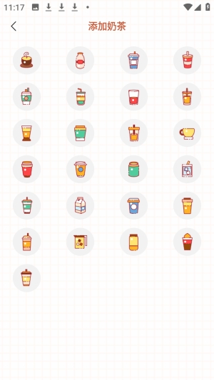 1、应用内提供丰富的奶茶图标,涵盖奶茶及多种水果茶饮品。
