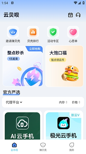 云贝呗是一款交易与服务综合平台,平台现已全面支持红手指、AI云手机、兔兔云、神龙云手机、掌派云手机等市面上主流热门云手机品牌,覆盖多种配置、多种时长与多档位机型,满足日常挂机、多开运行、手游托管、工作室使用等不同场景需求。
