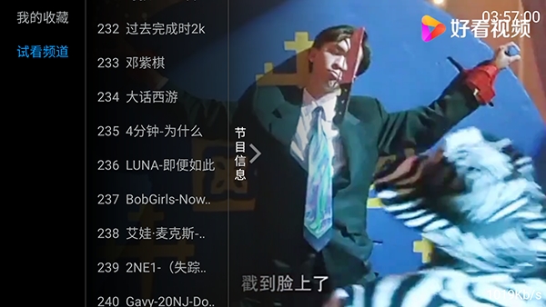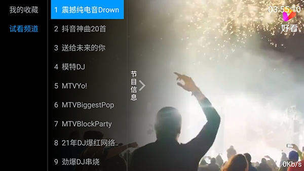 3、点击左侧屏幕可以唤起频道列表。