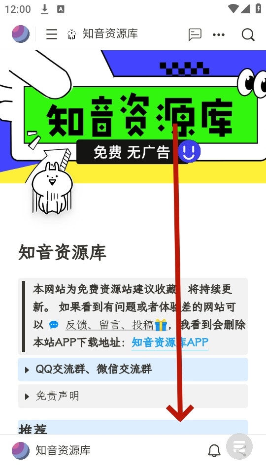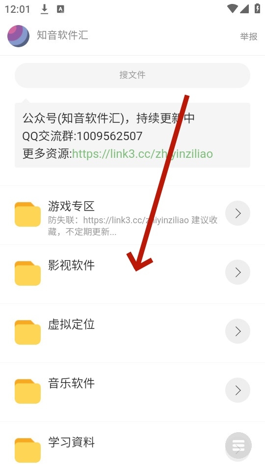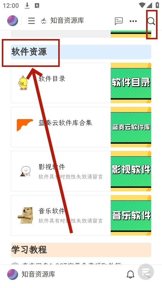 下载安装并打开知音资源库app,往下滑动根据分类找到你感兴趣的内容