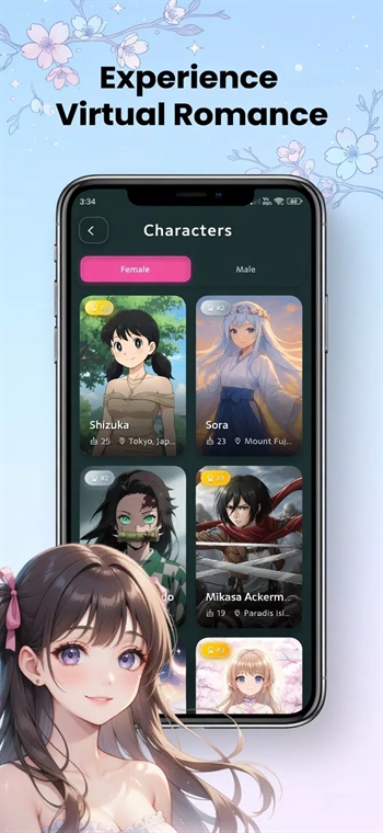 1、用户可以在AI决角色库里面挑选自己喜欢的AI角色。