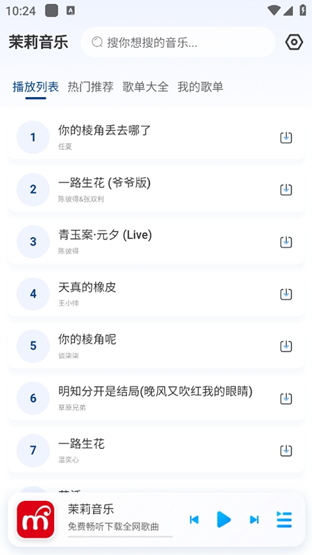 茉莉音乐软件是一个小众听歌软件,整合全网资源实时更新,能够帮助用户有效的解决想听的音乐需要付费的问题,涵盖了不同类型的特色音乐体验,支持将歌曲下载至设备,离线状态也能正常播放。