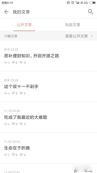 2、进入自己的文章列表后,选择自己本次需要向专题投稿的文章,并点击打开。
