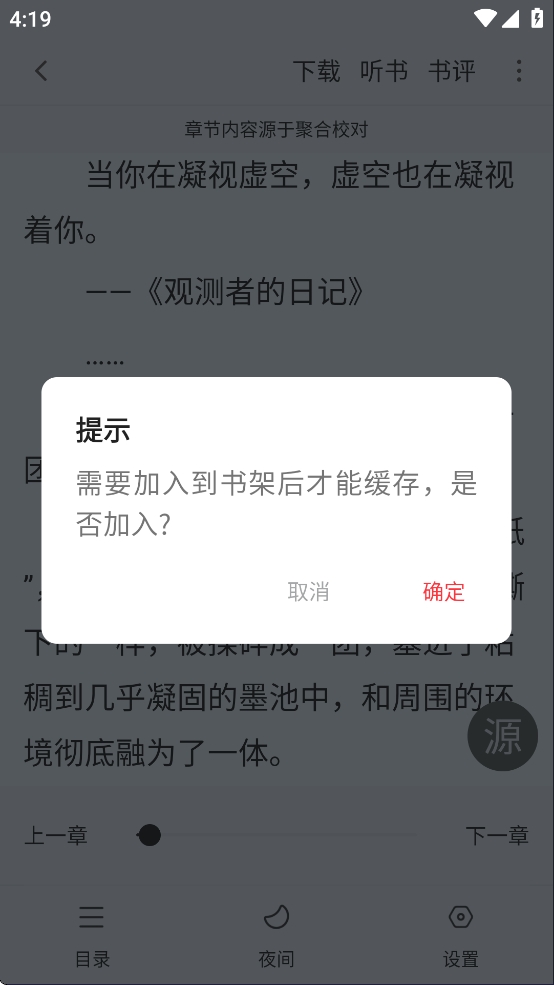 4、需要先将小说加入到书架才可以下载。