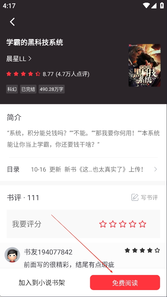1、打开软件,找到自己想要下载的小说,点击免费阅读。
