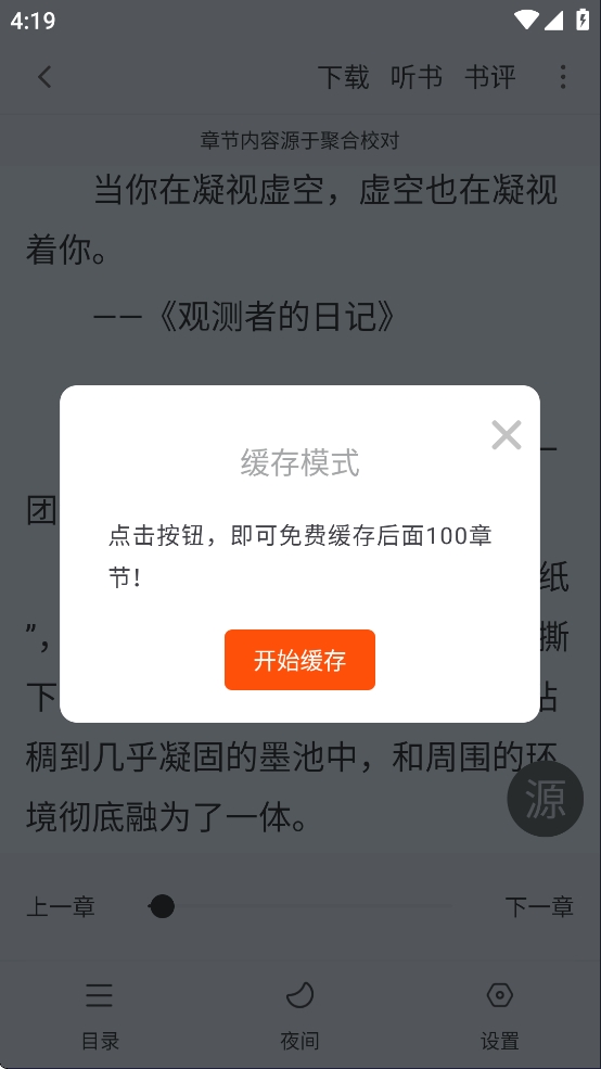2、一键下载你喜欢的小说,即使关闭移动网络,也可以阅读。